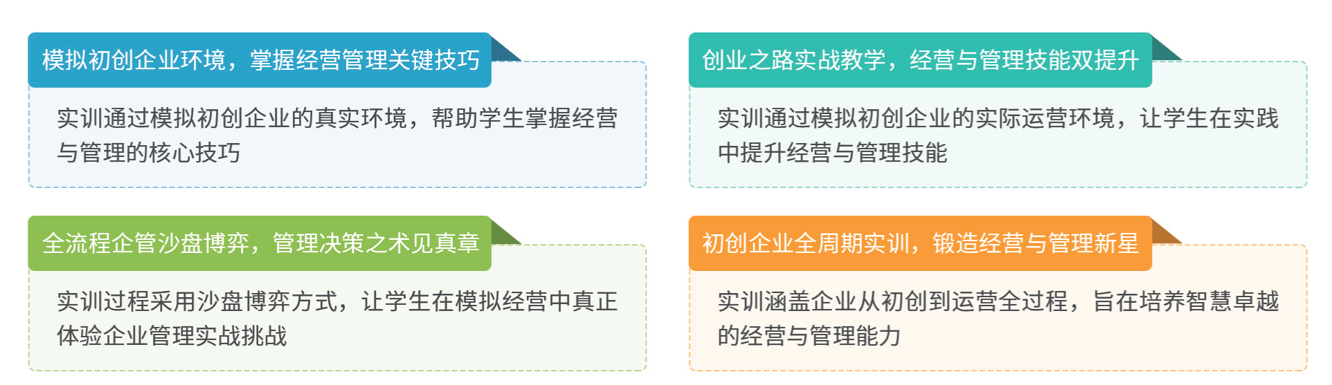 初创企业经营与管理实训旨在帮助学生在成功创立一家创业公司后,全面提升其企业经营与管理能力。实训过程为学生提供了一个真实、完整的初创企业运营环境,学生扮演创业者的角色,负责企业的战略规划、市场营销、产品研发、产品生产、财务管理等多个方面的运营工作,模拟企业日常经营中的各项任务和挑战。在这一过程中,学生将学会如何分析市场趋势,制定符合企业实际情况的战略目标和计划;如何根据市场营销策略,推广企业产品和服务,吸引并留住客户;如何管理研发团队,确保产品的创新与质量;如何优化生产流程,提高生产效率;如何制定财务策略,确保企业的财务稳健和可持续发展。通过实训,学生将深入了解企业运营的全貌并学会如何制定有效的经营策略和管理措施,培养出更多具备创新精神和管理才能的优秀创业者。