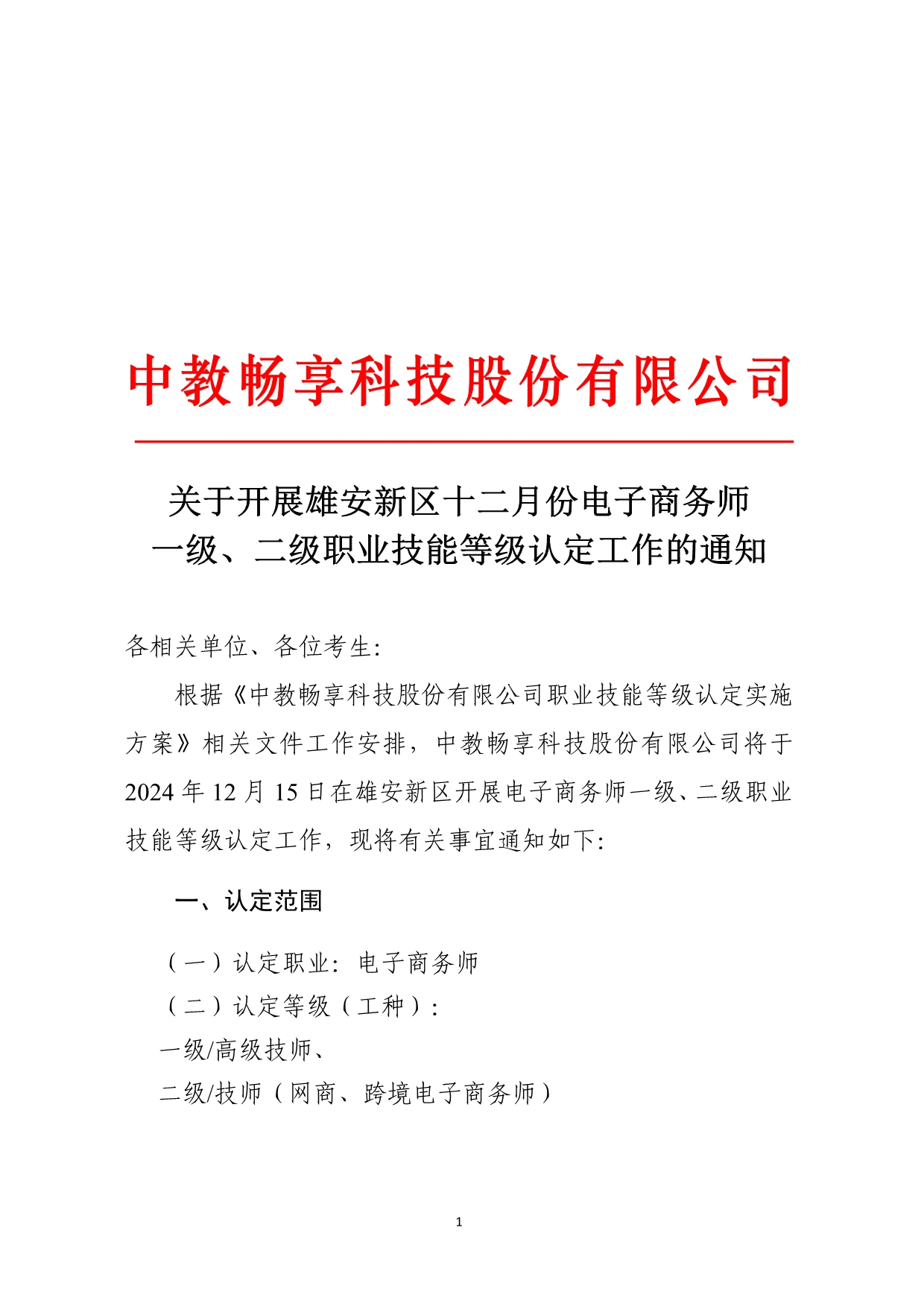 中教畅享科技股份有限公司关于开展2025年北京市社会化职业技能等级认定有关工作的通知